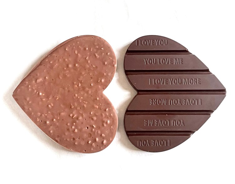 Le coeur rocher disponible en chocolat lait amandes ou noir amandes.