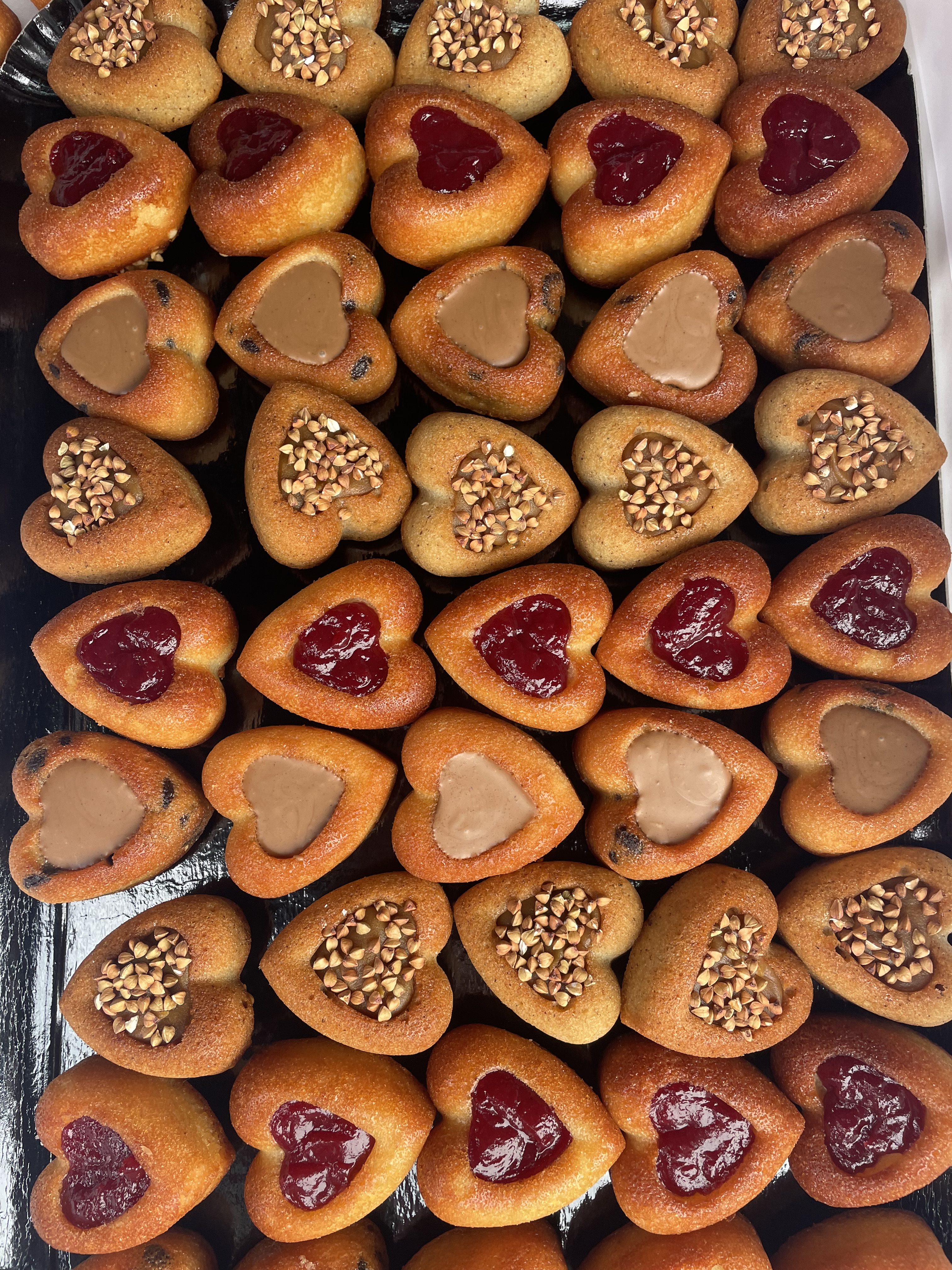 Le buffet de mignardises: Assortiments de mini-goûters. Au choix : Ty coeurs caramel sarrasin, chocolat ou framboises, mini cookies, mini financiers noisette , mini moelleux chocolat, chouquettes… Personnalisez votre buffet selon vos préférences. Tarif 1€/ pièce (Comptez 4 pièces/ personne)