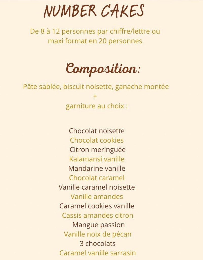 Il est bien évidemment personnalisable selon l’âge et les envies de chacun. Chaque Number cake est composé d’un biscuit moelleux aux noisettes, d’un crémeux ou confit, et d’une ganache montée.