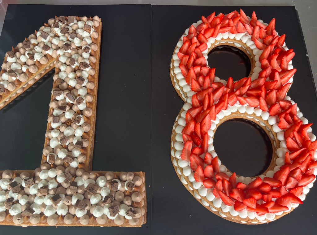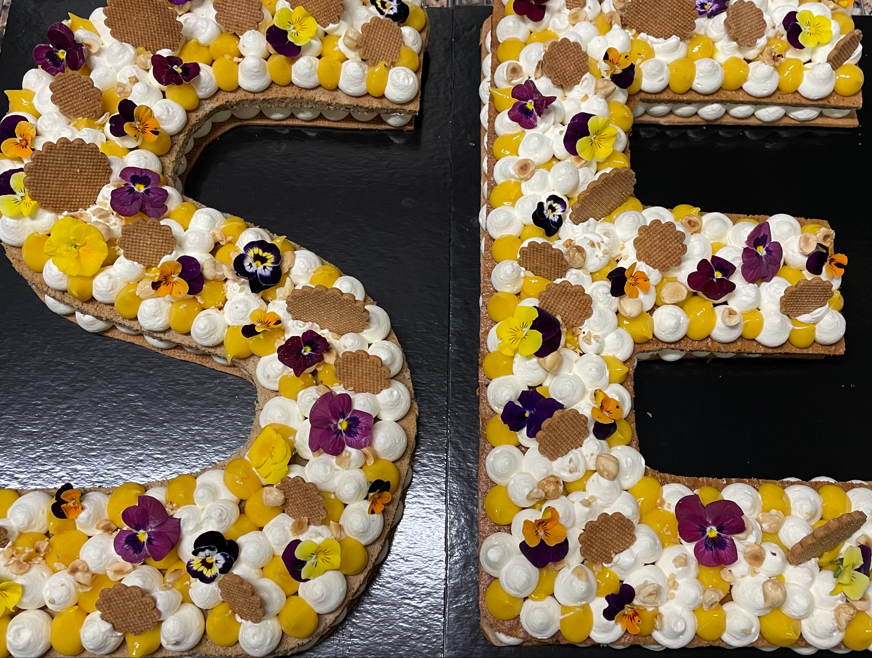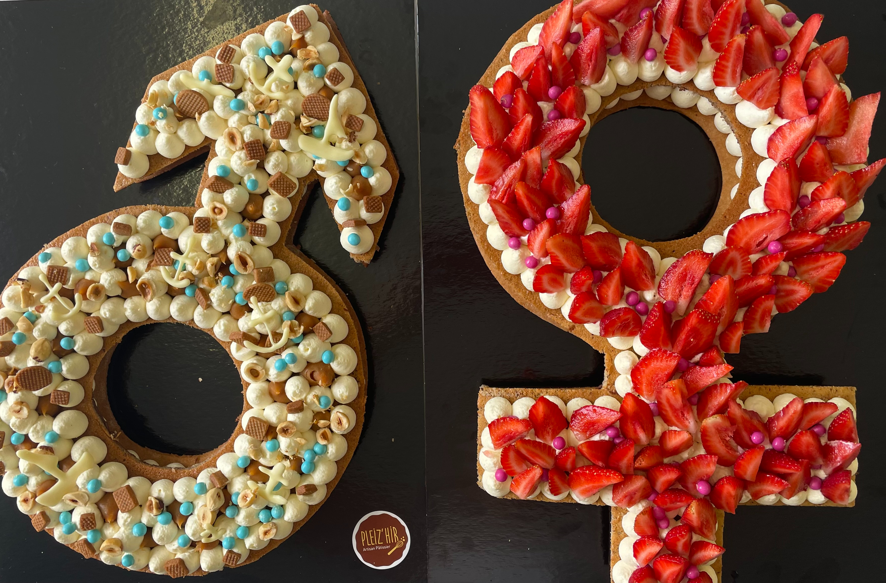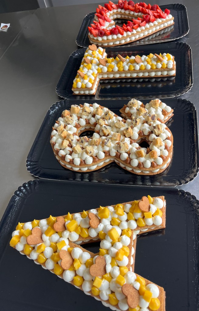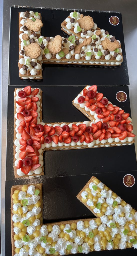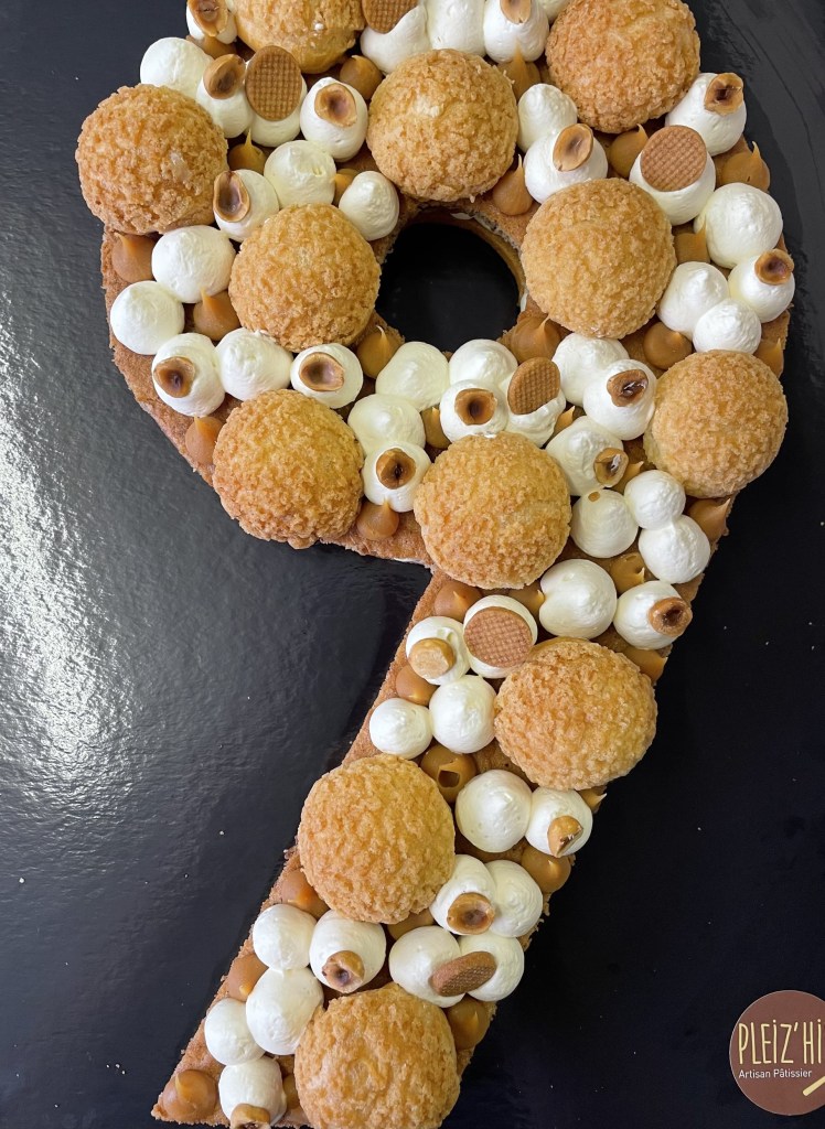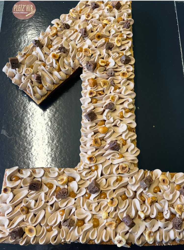 Il est bien évidemment personnalisable selon l’âge et les envies de chacun. Chaque number cake est composé d’un biscuit, d’un crémeux ou confit, et d’une ganache montée.